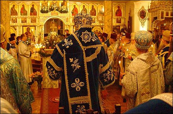 below: All-night vigil at the Synodal Cathedral of Our Lady