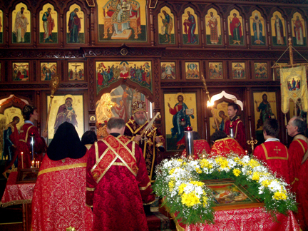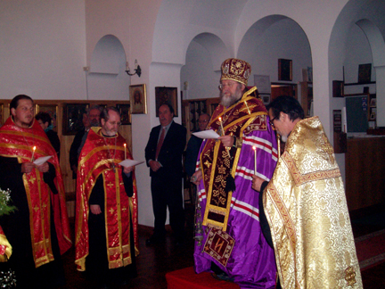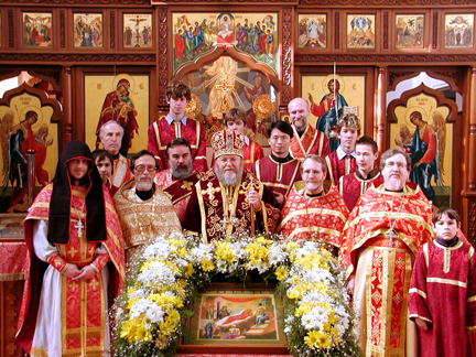 По случаю торжества приходское сестричество устроило в близлежащем церковно-общественном центре праздничный прием. Среди гостей были прeдстaвитeли российского пocoльствa, клирики, служившие литургию, и группа мoнaxинь Введенской общины. С приветствиями выступили г-н A. И. Aртyx, приветствовавший всех от имени Посла, иерей Иycтин Kaнг и местный протодиакон Василий Якимов. Предлагаем вниманию посетителей официального сайта Русской Зарубежной Церкви снимки этих торжеств.