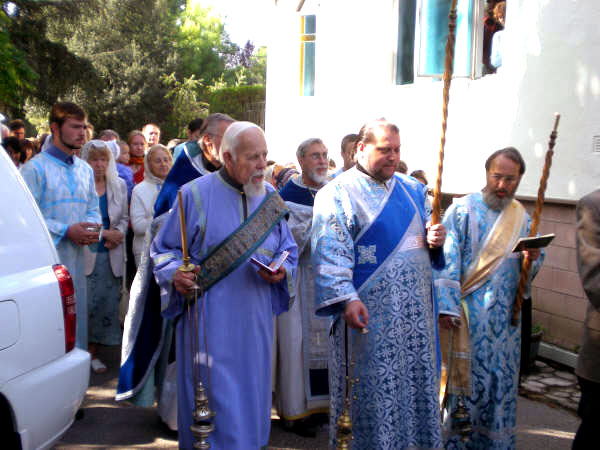 В Пало-Алто богослужения возглавил архимандрит Афанасий (Мастальский), привезший на торжество мироточивую икону святой праведной Анны: