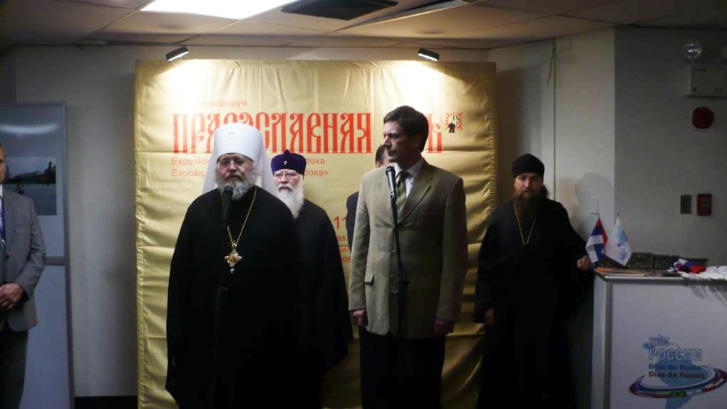 В час по полудню митрополит Иларион принял участие в открытии выставки «Православная Русь»,  в котором так же принимали участие Высокопреосвящен-ный Марк, архиепископ Хутский и Виноградовский, представители министерства иностранных дел РФ и организаторы выставки.