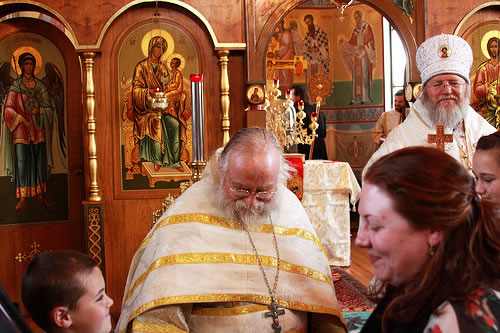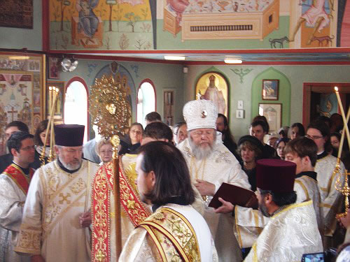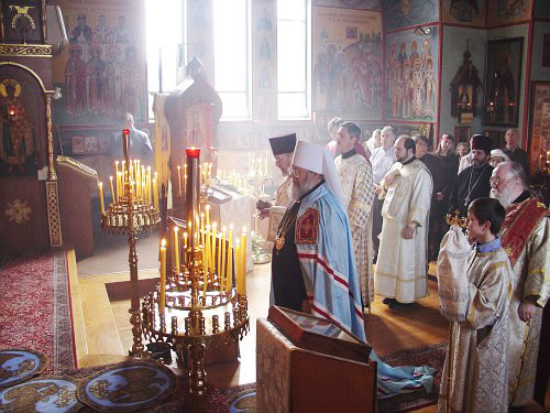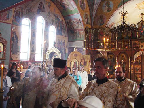 В субботу вечером Владыка возглавил Всенощное бдение, а в воскресенье утром – Божественную литургию. Владыке сослужили иерей Виктор Болдевскуль, настоятель Богоявленского прихода, иерей Алексий Аедо из Чили, иерей Брендан Кроули (на всенощной), при протодиаконах Иосифе Ярощук, Фоме Реске и Николае Дробот, и диаконах Александре Ярощук, Николае Ольховском иЕвгении Каллаур. На малом входе диакон Александр был возведен во протодиаконы. Митрополит совершил и две хиротонии. После Великого входа протодиакон Фома был рукоположен в иерейский сан, а после Евхаристического канона Его Высокопреосвященство совершил диаконскую хиротонию иподиакона Виктора Гансон. Интересно отметить, что в этот же день иеромонах Иоасаф (Маклеллан), который вырос в Богоявленском приходе и был при нем чтецом и регентом, был возведен в сан архимандрита в Мюнхене.