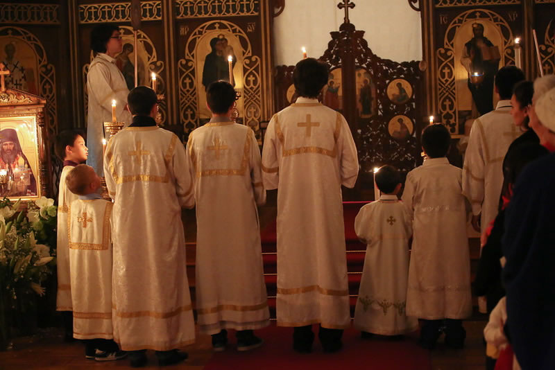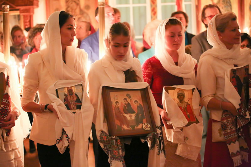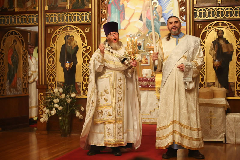 См. ниже приводимые фотографии пасхальных богослужений в Покровской церкви г. Лос-Анджелеса, где настоятельствует протоиерей Виктор Цешковский.