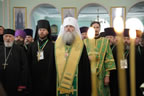"Дорогие братья и сестры, Господь собрал нас сегодня в храме, заложенный Иоанном Кронштадтским, чтобы мы могли верою, любовью и чистотой прославлять Бога нашего и его угодника, воистину Всероссийского пастыря отца Иоанна, которого Господь прославил еще при жизни за его многочисленные духовные дары. С каждым днем слава о нем ширится и растет. Уже прошло более ста лет, как он покинул земной мир, он был великим молитвенником при жизни, и сейчас он молится о нас. Господь открывает сердца своим праведным. Мы все на нашем трудном жизненном пути нуждаемся в помощи и молитвенной поддержке. Эту поддержку и любовь дает нам святой Иоанн Кронштадтский", - обратился к присутствующим митрополит Сергий.
