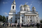 По завершению праздничного богослужения архипастыри возглавили традиционный крестный ход вокруг Александро-Невского собора с главной иконой – Тихвинским образом Богоматери.