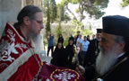 К концу Божественной литургии храм посетил Блаженнейший Патриарх Иерусалимский и всея Палестины Феофил III, радостно приветствовавший Преосвященного епископа Николая, архимандрита Романа и всех собравшихся. В своем слове, произнесенном на английском языке, Его Блаженство рассказал о значении подвига преподобномученицы Елизаветы и пожелал игумении Елизавете с сестрами многих милостей и благословений Божиих в несении своего монашеского делания.