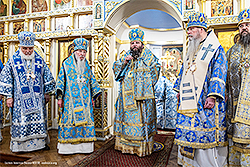 Во вторник, 10 декабря, в праздник Коренно-Курской иконы Божией Матери «Знамение», Высокопреосвященнейший митрополит Восточно-Американский и Нью-Йоркский Николай, Первоиерарх Русской Зарубежной Церкви, возглавил Божественную литургию в Знаменском соборе, а накануне – Всенощное бдение. Его Высокопреосвященству сослужили Преосвященные члены Архиерейского Синода, соборный клир, местные представители Поместных Православных Церквей, духовенство Восточно-Американской епархии и гости в священном сане, среди которых был протоиерей Владимир Мальченко, прибывший из Торонто (Онтарио, Канада) с большой группой паломников, прихожан Свято-Троицкого собора в этом городе. На середине собора возлежала главная святыня Русской Зарубежной Церкви – Курская икона Божией Матери, которой поклонились многочисленные верующие.