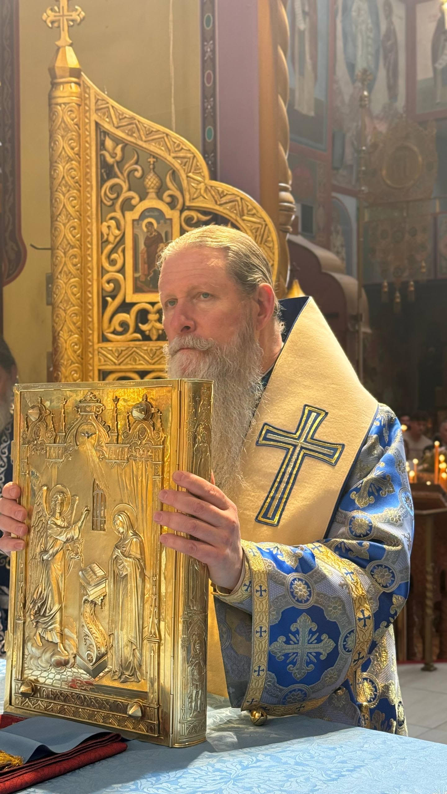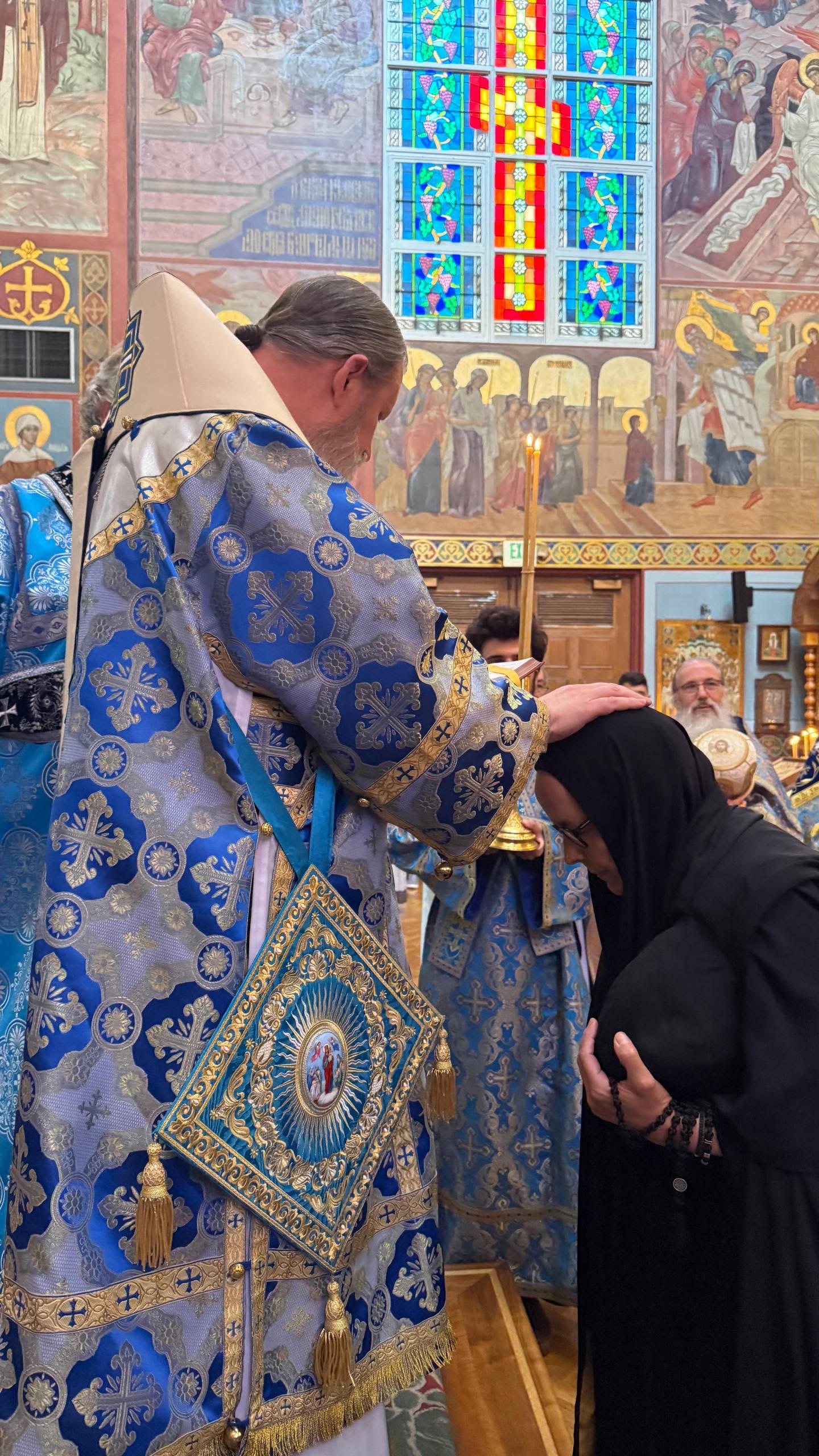 Во время малого входа архиепископ Кирилл совершил чин поставления игумении над монахиней Екатериной, настоятельницей монастыря святой великомученицы Екатерины Синайской в Соноре (Калифорния).