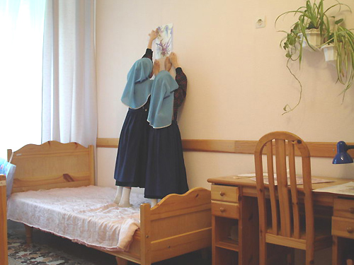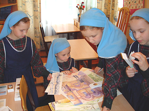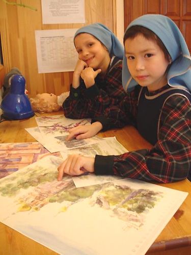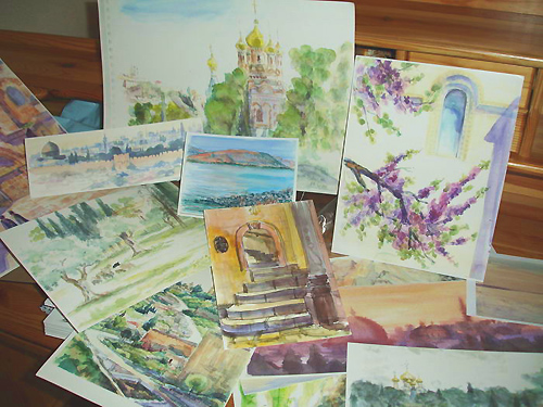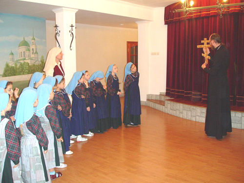 All of our orphan girls and colleagues venerated the cross-reliquary with great reverence. This reliquary contains holy things dear to all believing hearts—portions of the holy earth and stones. Reading their names, one immerses oneself into Holy Scripture—Bethlehem, the Jordan River, Mount Zion and Temptation Mount, Magdala and Tabor, Gethsemane and Golgotha. The girls then gleefully enjoyed the artwork of the Gethsemane nuns—light, airy, luminous—and hung them over their beds. In one there is a silvery garden with old olive trees, in another, the Abbess' own rendering of a Jerusalem sunset. In this way, St Elizaveta tied our little orphanage with her beloved Holy Land.