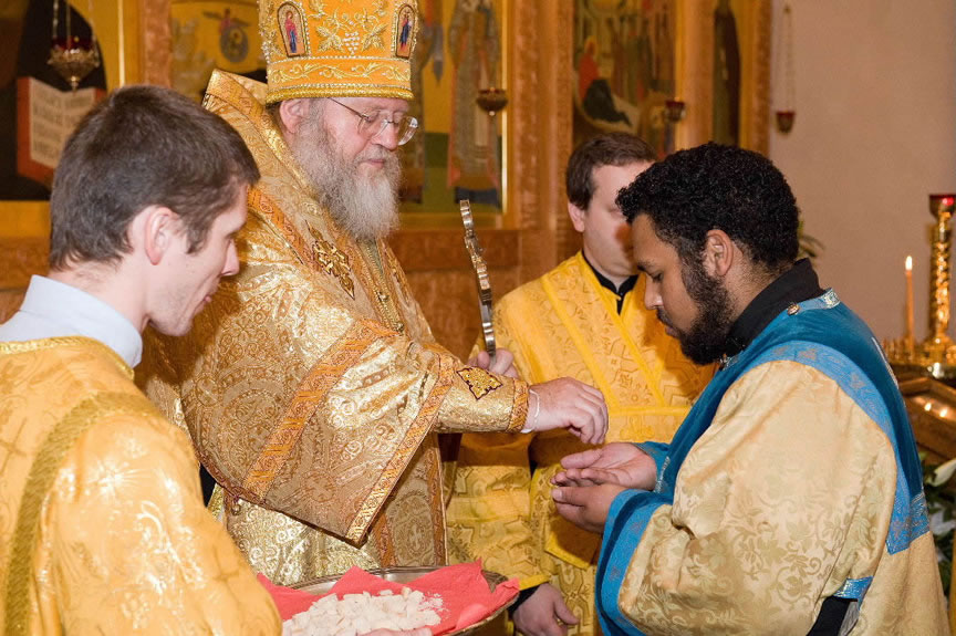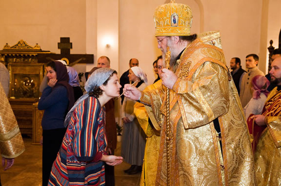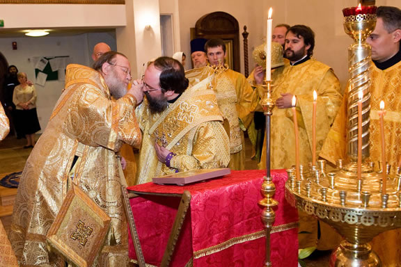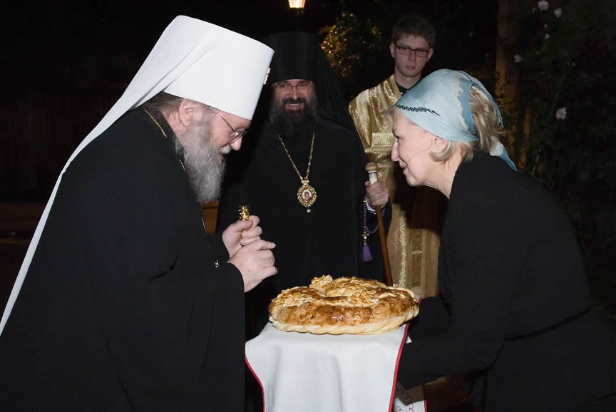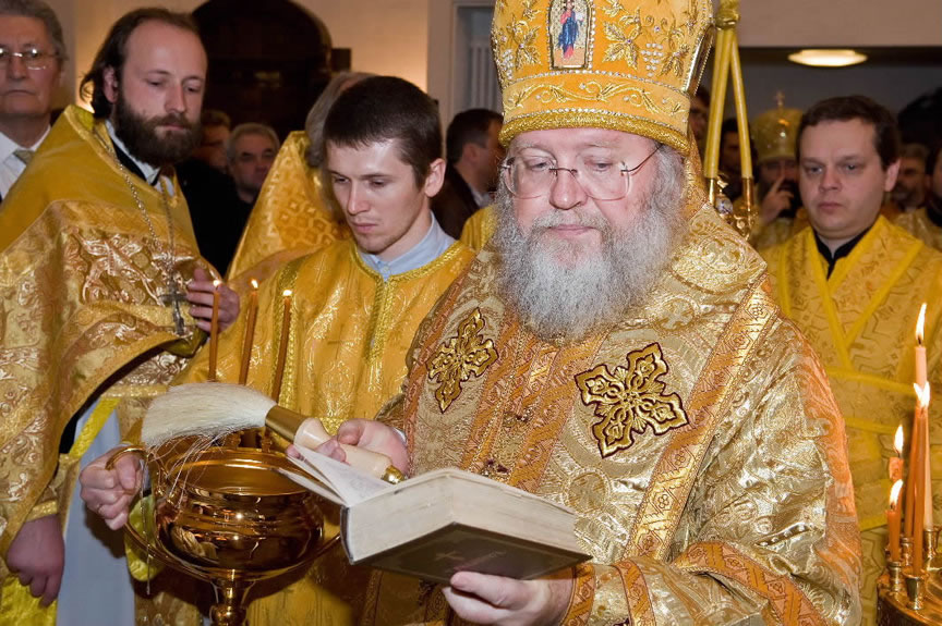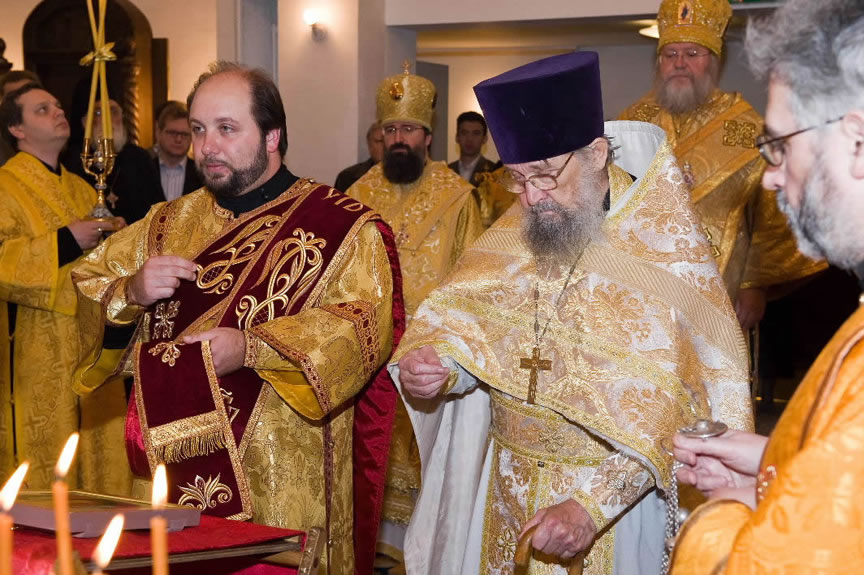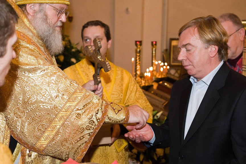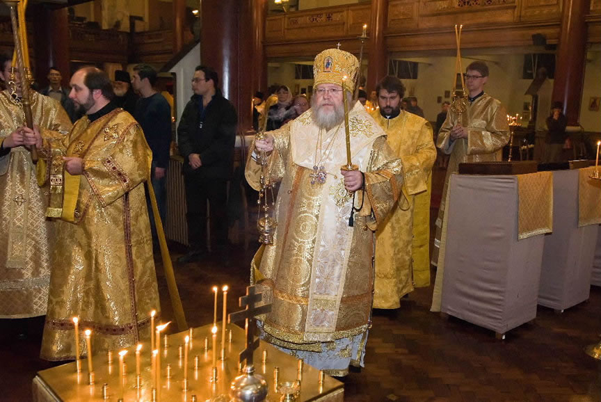 After the services, the Cathedral parish offered a festive luncheon. That evening, the hierarchs performed all-night vigil in Dormition Cathedral of the Sourozh Diocese, at the end of which Bishop Elisei hosted an evening reception in honor of the First Hierarch of the Russian Church Abroad. The next morning, Sunday, November 15, Metropolitan Hilarion celebrated Divine Liturgy at Nativity of the Mother of God Cathedral.
