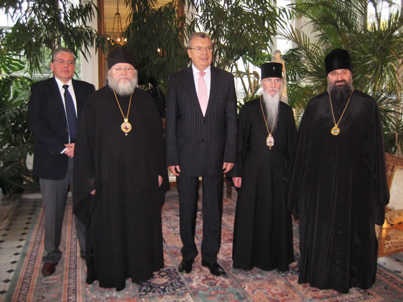 From November 9-15, 2009, His Eminence Metropolitan Hilarion visited the parishes of the Russian Orthodox Church Outside of Russia in Liverpool, Mattingham and Colchester, and performed a moleben at the relics of St Alban the Martyr. His Eminence's schedule in London included meetings with Metropolitan Kallistos (Ware) of Diokleia and Orthodox students of Oxford University. Metropolitan Hilarion also met with the Archbishop of Canterbury, Rowan Williams, and visited Westminster Abbey. Later, Yuri Fedotov, Russian Ambassador to the United Kingdom, hosted a reception in honor of the high guest.