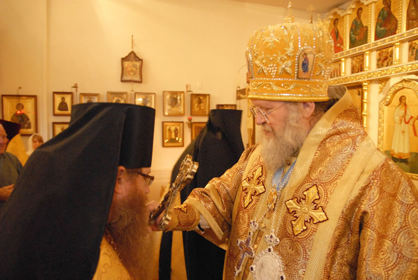 On November 3, 2009, the feast day of St Hilarion of the Kiev Caves, the Synodal Cathedral of Our Lady of the Sign in New York marked the namesday of His Eminence Metropolitan Hilarion. Vladyka Hilarion celebrated Divine Liturgy on this day along with His Grace Bishop Gabriel of Montreal and Canada, as well as his vicar bishops, His Grace Bishop George of Mayfield and His Grace Bishop Jerome of Manhattan, as well as clergymen of the diocese and visiting priests. At the end of divine services Vladyka Hilarion was given the highest honor of the Russian Orthodox Church Outside of Russia, the Kursk-Root Medal of the First Order, to mark the 25th anniversary of his archpastoral consecration. The parishes of the Eastern American Diocese also gave him gifts of a cross and panaghia. Afterwards, the participants of the celebration were offered an abundant trapeza luncheon, during which speeches were made honoring His Eminence.
