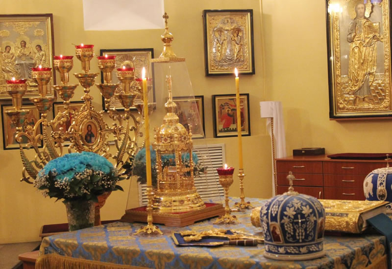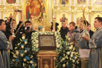 Divine services began with the ceremonious entry of the ancient Kursk-Root Icon of the Mother of God "of the Sign.” Metropolitan Veniamin led a moleben service before the commencement of Divine Liturgy.