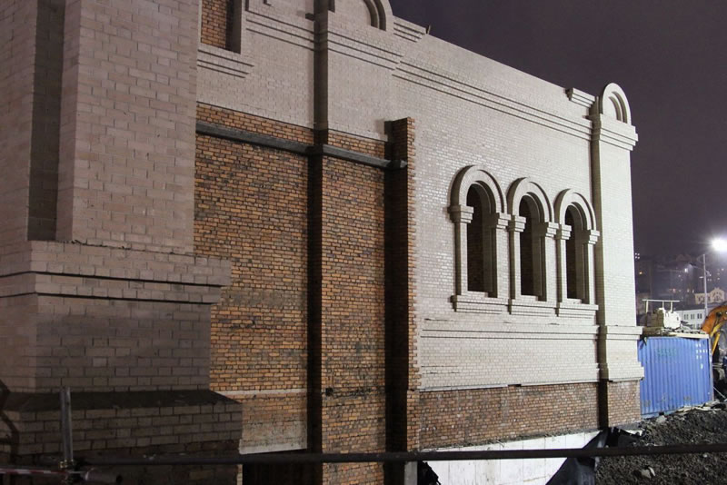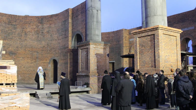 The construction of Preobrazhensky Cathedral in Vladivostok began in 2011. At the present time, most of the work has been completed. The ground floor rests on a massive foundation, great walls and large columns rising above it. The walls will be covered with white stone and decorated brick. The church is located on the shores of the Golden Horn, on a parcel on Korabelny Road, abutting the central square of the city. The new cathedral promises to be the grandest in all of the Primoriye region and will accommodate two thousand people, standing 67 meters high. The cathedral is being built by the Vladivostok Diocese on voluntary donations.