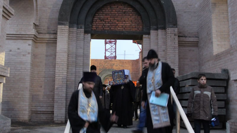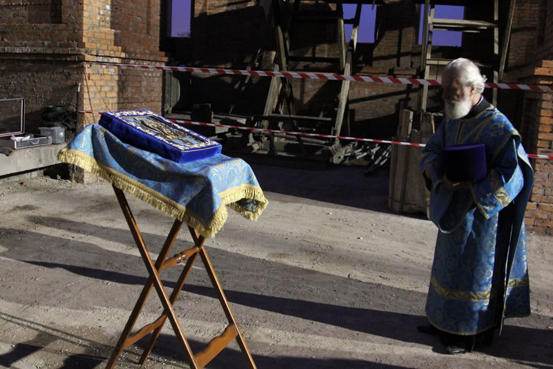Early in the morning of November 15, 2013, His Eminence Metropolitan Veniamin of Vladivostok and Primorsk performed a moleben to the Most-Holy Mother of God before the Kursk-Root Icon of the Mother of God "of the Sign" in Preobrazhensky Cathedral in Vladivostok, which is still under construction.