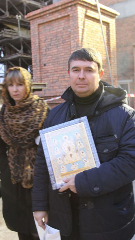 After the moleben, Metropolitan Veniamin thanked the builders, led by Viktor Ivanovich Kopysov, Deputy Director of Russian Special Construction Administration No. 712, and gave him a painted copy of the Kursk-Root Icon of the Mother of God "of the Sign” blessed on the miracle-working icon itself.