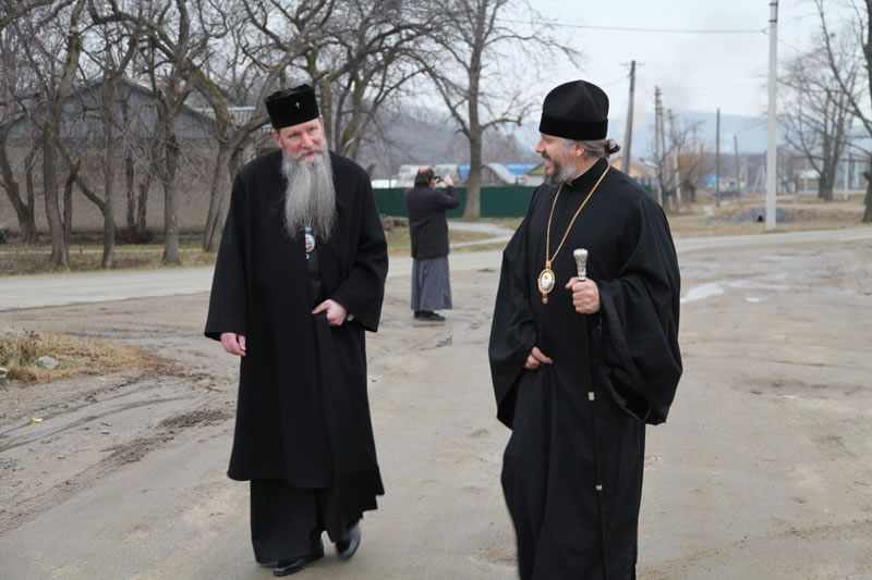 On November 19, 2013, the second day of the visit of the Kursk-Root Icon of the Mother of God "of the Sign" to Nakhodka Diocese, a delegation of the Russian Orthodox Church Outside of Russia accompanying the holy image visited the old and new Church of the Iveron Icon of the Mother of God, still under construction in the town of Khmylovka. They also visited the rectory, which dates to pre-Revolutionary times.