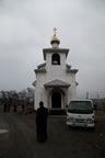 The new Iveron Church is being built in the middle of town, near the rectory. The first church was built when the town was known then as Khmelevka-now Khmylovka-in 1915-16. It could accommodate 500 worshipers. In the Soviet period, after the murder of its rector, Father John, a priest would make the trip to Khmylovka from the town of Vladimiro-Alexandrovsk. At the end of the 1920’s, the church was made into a social club. In the 1930’s, the town church was confiscated by the local kolkhoz. The building stood until 1967, when it was demolished.