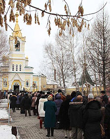 During the visit of the Kursk-Root Icon of the Mother of God "of the Sign" to the city of Ussurisk, Russia, Protection of the Mother of God Church, where the icon is being kept, will remain open around the clock from November 21-22, 2013 . Over a thousand pilgrims came within the first few hours.