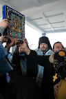 The miracle-working Kursk-Root Icon was brought to Kazan Cathedral in Nakhodka on November 18. It is estimated that over the three days the icon was in the diocese, until November 21, some 10,000 people venerated it.