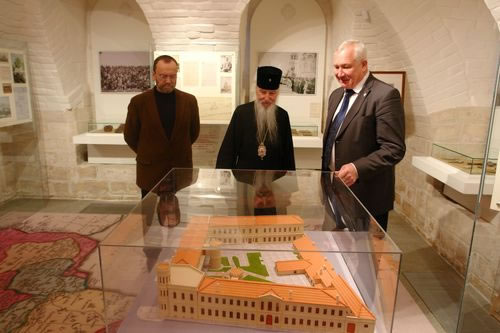 Mr Yuri Grachev, Vice President of the IPPO, and Mr Grigory Manevich, Museum Director, told Archbishop Mark about the exhibits and the creation of the museum. Mr Grachev proudly showed him models of Jerusalem's Sergiev Posad and the Podvorie of the IPPO in Bari, Italy.