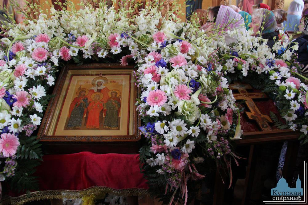 On September 30, 2014, the feast day of SS Vera, Nadezhda, Lubov and their Mother Sophia, His Eminence Metropolitan German of Kursk and Rylsk and His Eminence Archbishop Mark of Berlin and Germany, who is leading a delegation of clergymen of the Russian Orthodox Church Outside of Russia, celebrated Divine Liturgy in the church dedicated to the saints in north-west Kursk.