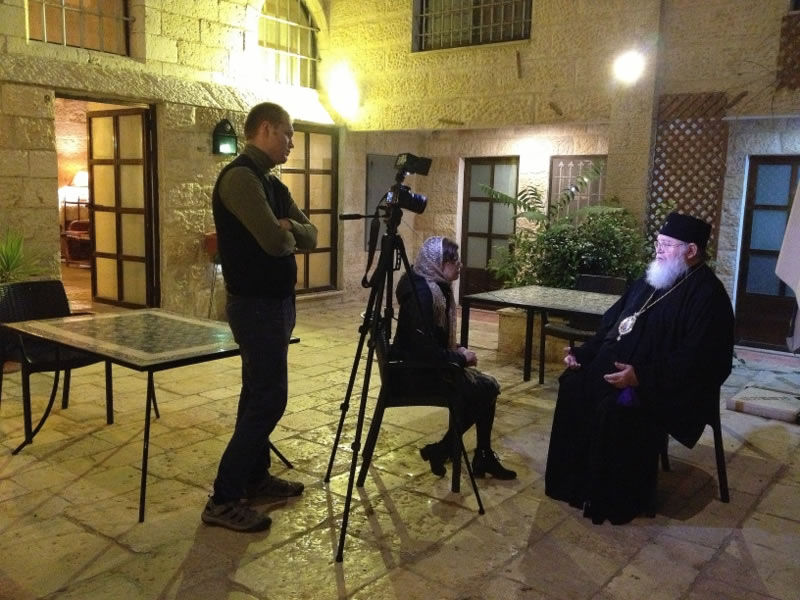 Later that day, His Eminence granted an interview to Soyuz Television and attended the presentation of a new book, Russians in the Holy Land, the foreword of which he wrote.