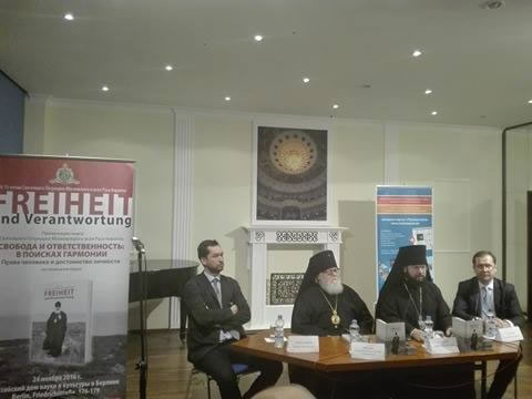 A round table titled “The Russian Orthodox Church and Compatriots: Cooperation in Europe” was held on November 24, 2016, at the Russian House of Sciences and Culture in Berlin, Germany. His Grace Bishop Antony of Borogodsk, Head of the Administration of Institutions Abroad, opened the meeting. He stressed that the parishes of the Russian Orthodox Church throughout the world serve as gathering places for the Russian diaspora. His Grace discussed the directions taken in the joint projects of the organization Rossotrudnichestvo [Russian Cooperation] and his Administration, which was jump-started after a conference of compatriots held in November, 2015, in Moscow, and the opportunity to establish a road map of cooperation of dioceses abroad and representatives of Russia in other countries.