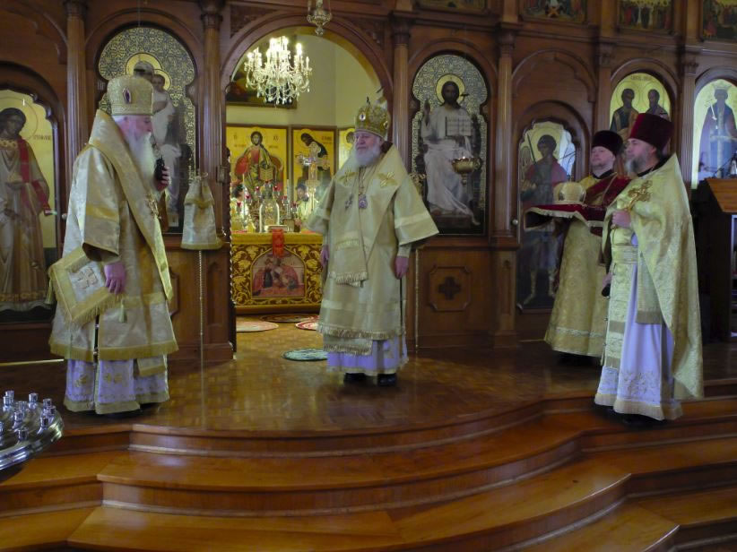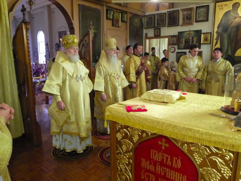 Before the veneration of the cross, Vladyka George and Protopriest George Lapardin addressed Metropolitan Hilarion, and on behalf of the parishioners and worshipers giving him a gold mitre to mark the 20th anniversary of his leadership of the Diocese of Australia and New Zealand.