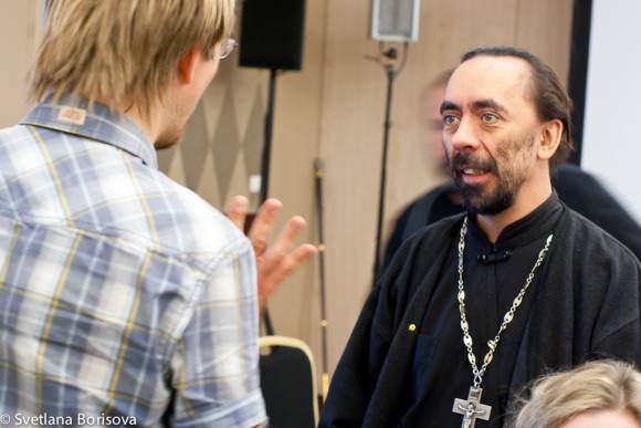 Hieromonk Irenei spoke in English with astounding frankness and humor on the essence of Christian life in general and Christian mission in particular as first of all the transformation of the persona. This touchd the hearts of most of the conference participants—many were brought to tears…