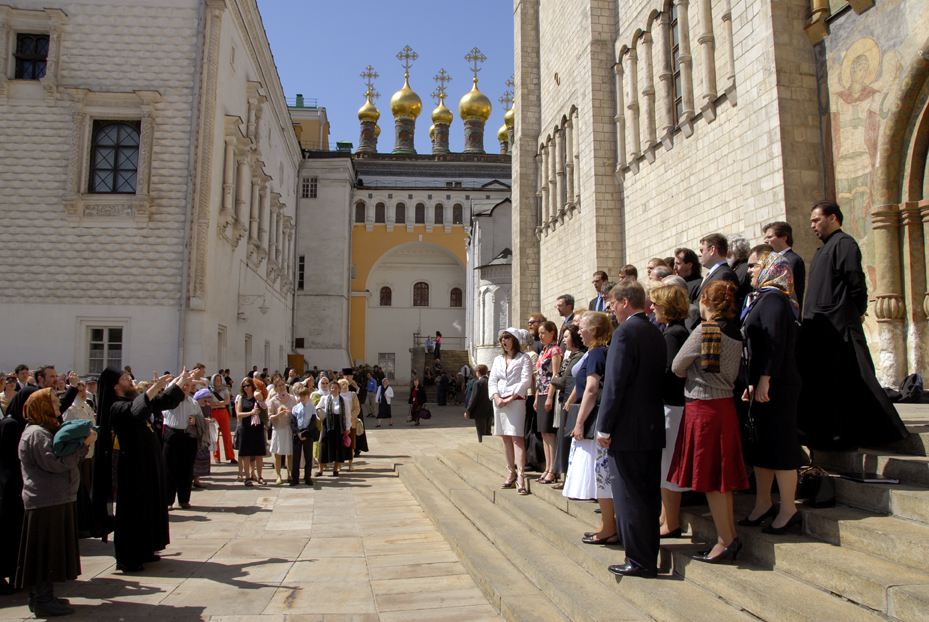 Москва: Фоторепортаж о Божественной литургии в Успенском соборе Московского Кремля и приеме, устроенном прихожанами Русской Зарубежной Церкви проживающими в Москве, в честь восстановления братского общения в Поместной Русской Православной Церкви